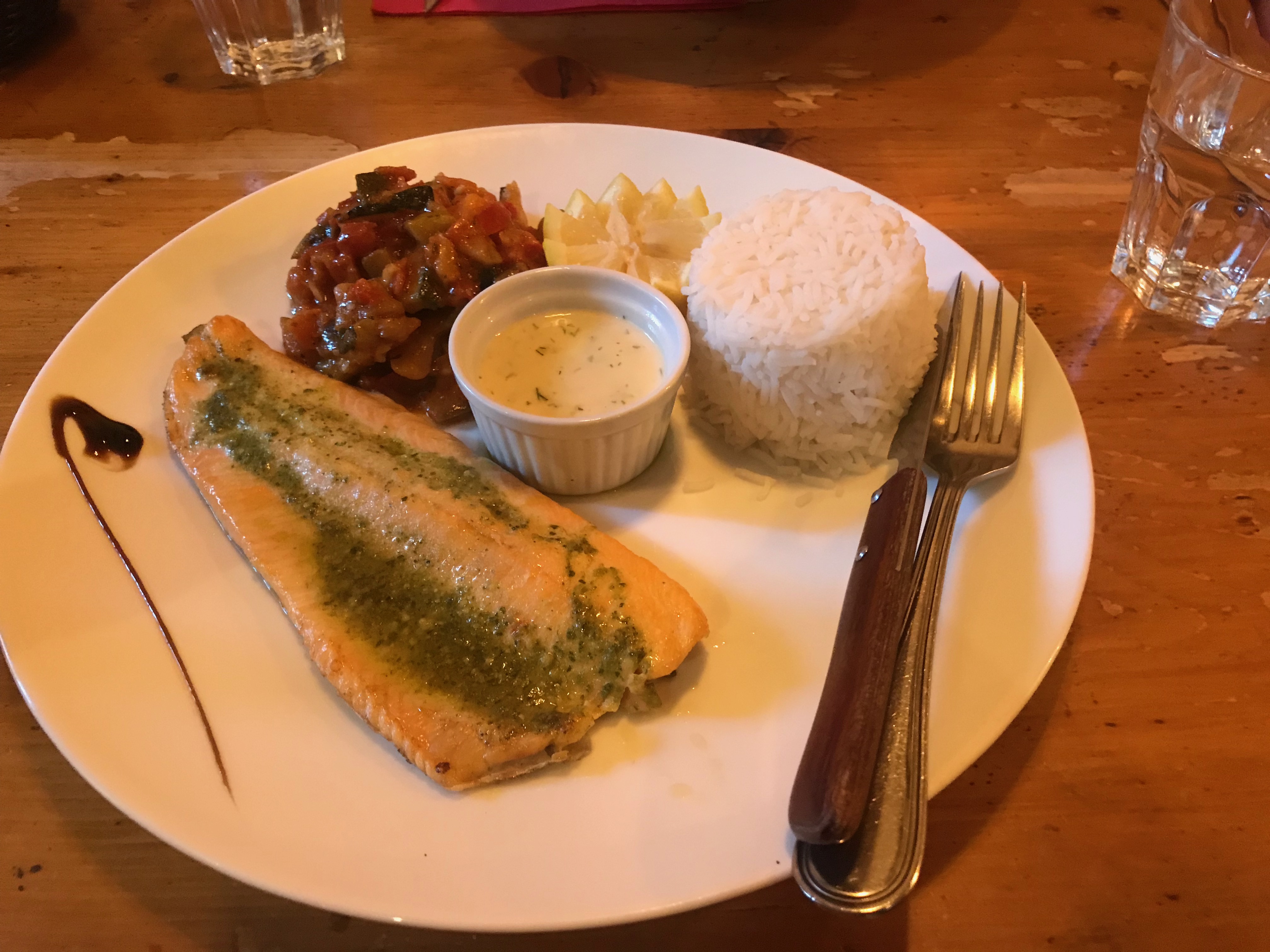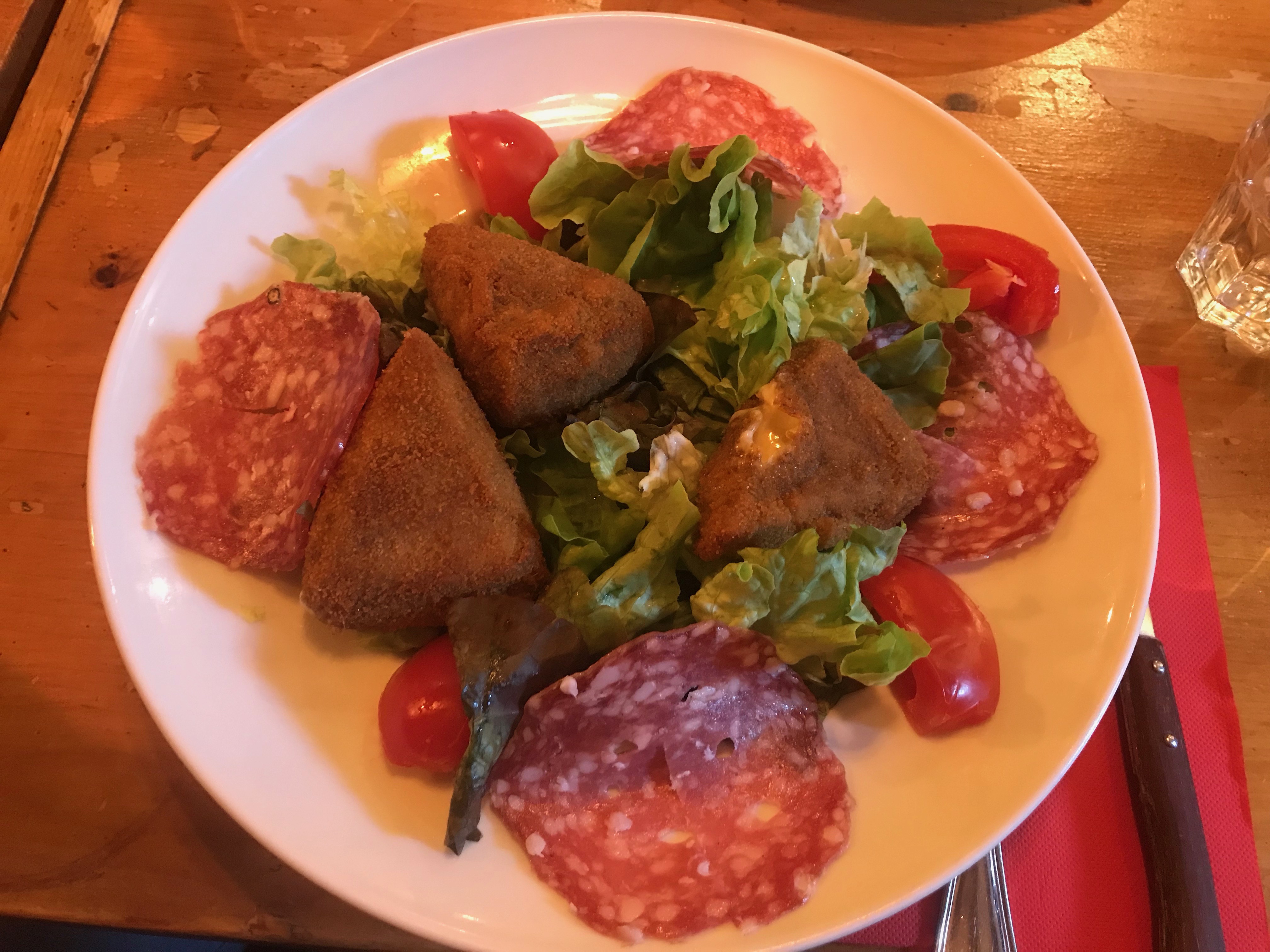 Quand nous sommes allés au restaurant, je savais déjà ce que je voulais. Mes amis avaient des salades avec des morceaux de reblochon sur le dessus et du poisson: